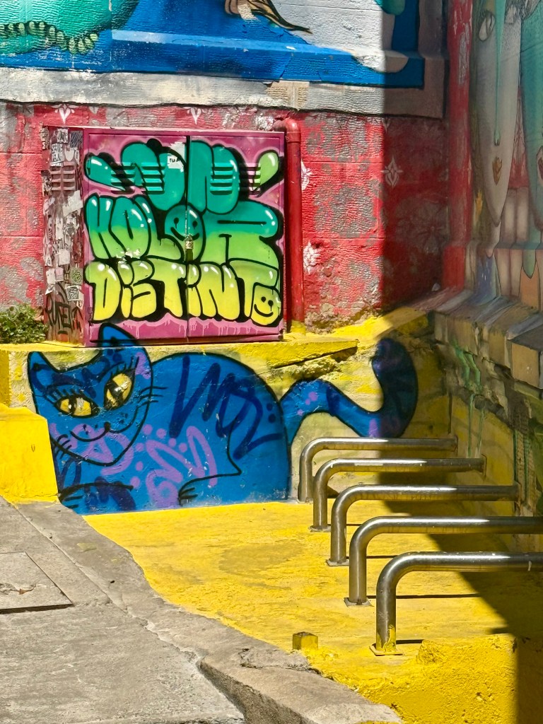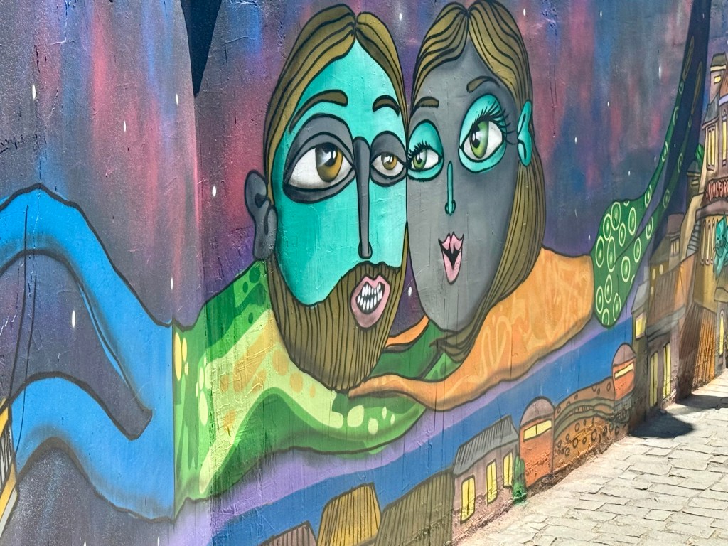 The streets were dry and there were no crowds there. What was there was phenomenal street art and colorful buildings. We were all enthralled! This is a place Brian and I had never been and I don’t think anyone regretted missing the Old City to come here.